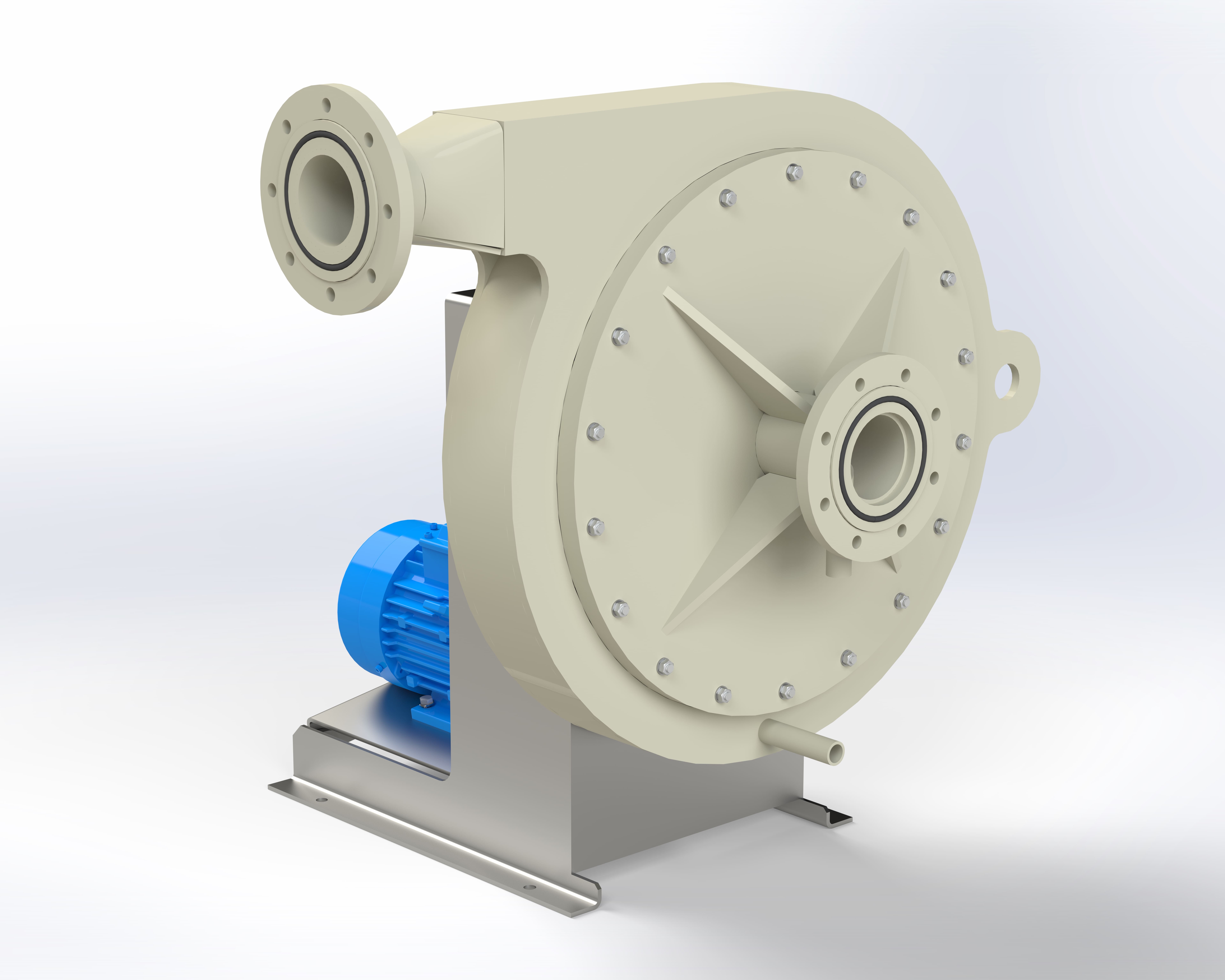 In aggressive environments, the absorption and removal of chemical and acidic vapors are ensured by spiral radial fans with thermoplastic casings.