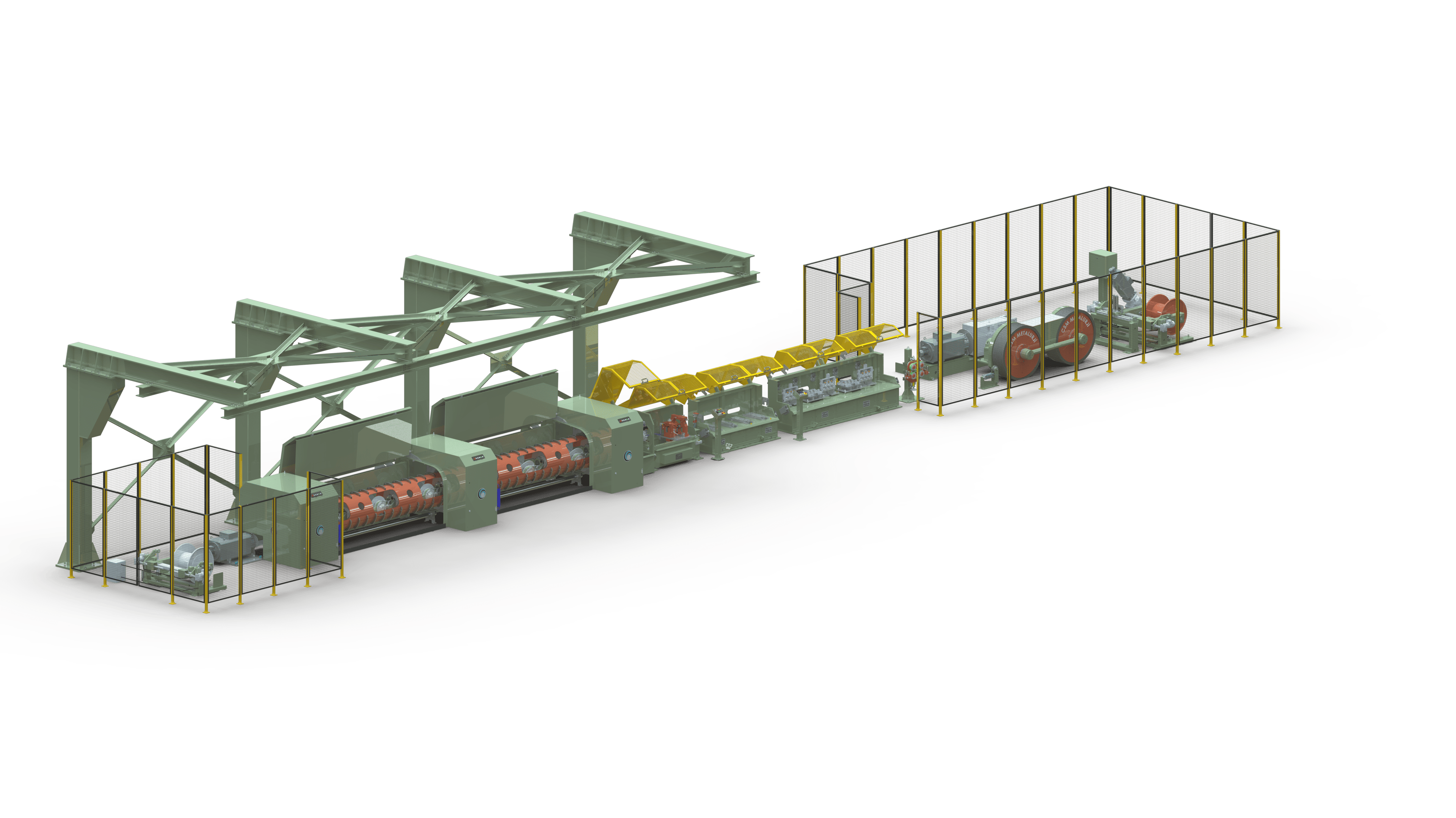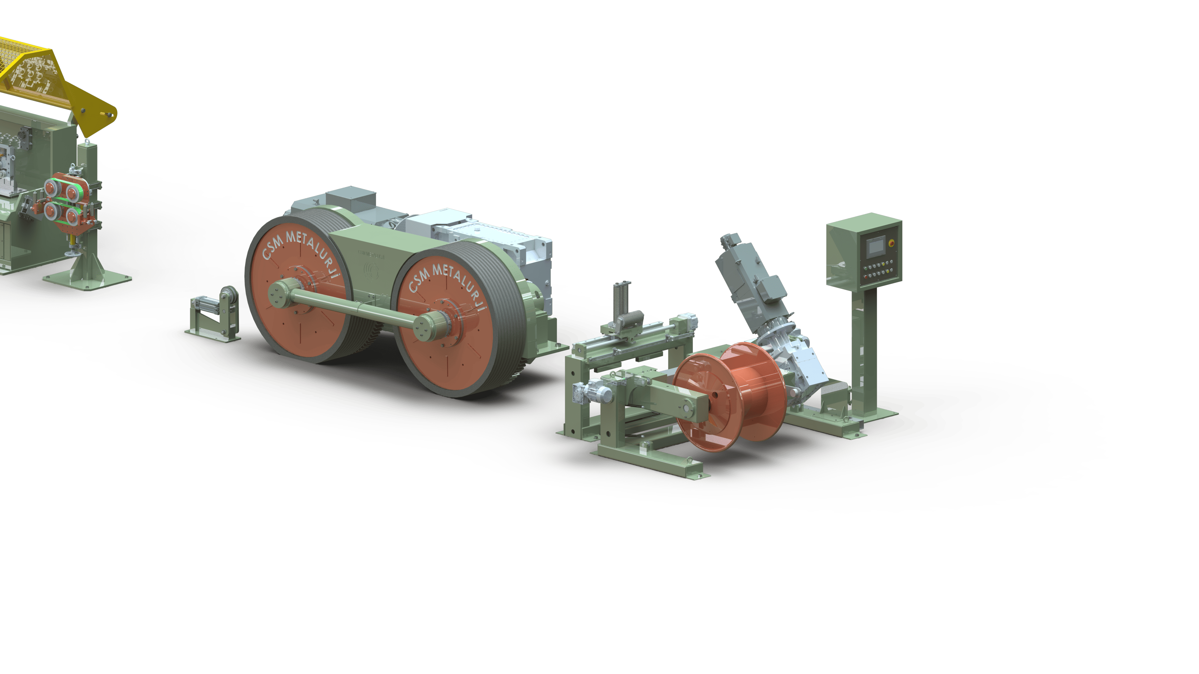 CSM METALURJI designs the stranding machines with stretching unit to manufacture of elevator ropes in high-speeds. For manufacturing Bowden cable and special ropes additional bull-head pay-off can be integrated tubular stranding machine.