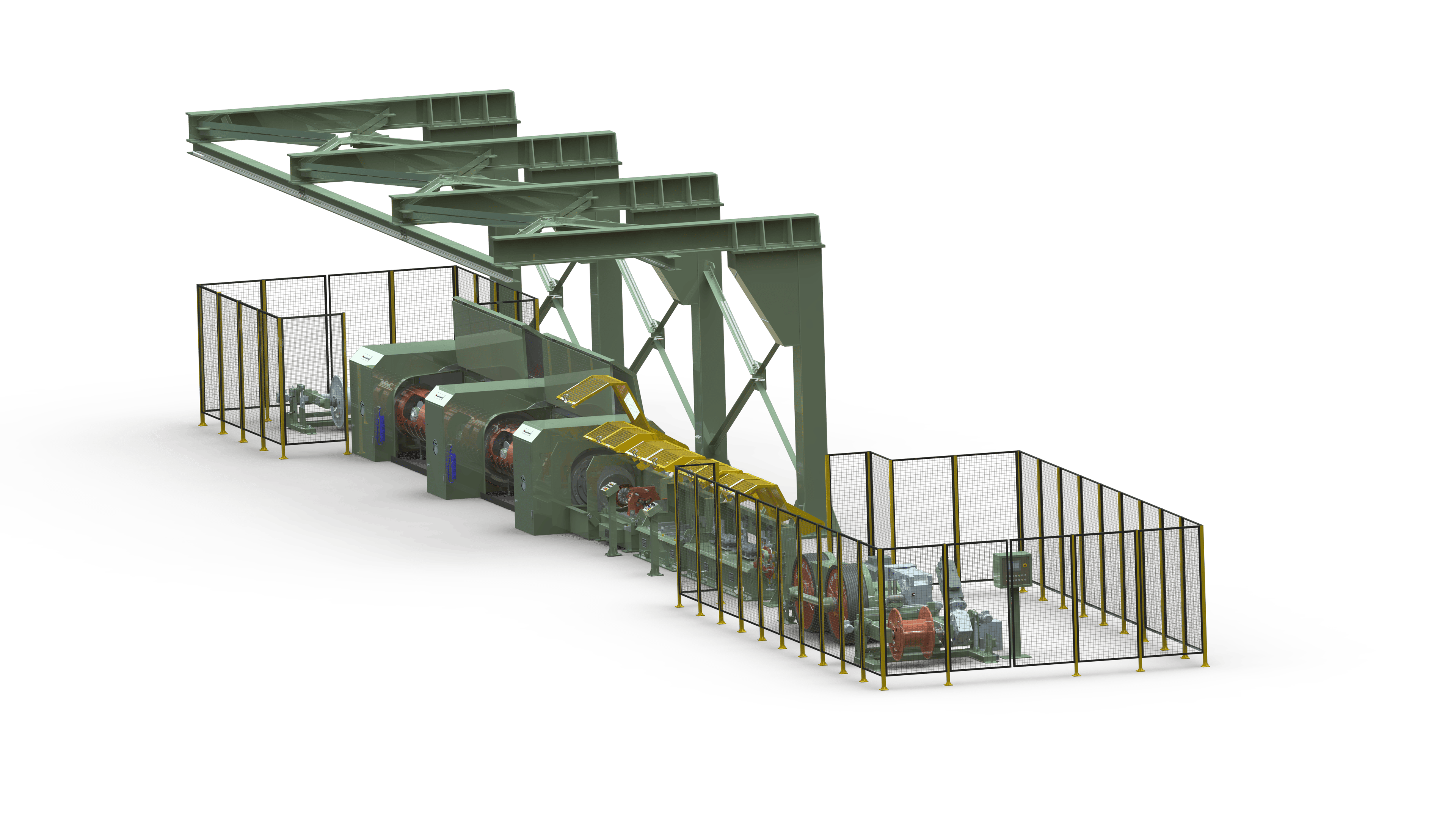 • machines are driven by frequency controlled three-phase motors, providing separate drives to the stranding rotor, haul-off and take-up assemblies meaning that gears and transmissions are no longer required for this purpose